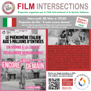 28 maggio 2025 Nell’ambito della rassegna FILM INTERSECTIONS 2024-25, il Club International e la Sezione italiana hanno proposto il film “C’è ancora domani” di Paola Cortellesi.